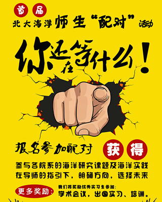 为了帮助更多对海洋学科有足够热情与兴趣的同学寻到通向海洋研究的大门钥匙,我们发起了北大海洋师生“配对”活动,希望通过海洋研究院,为北大学子提供参与海洋研究课题与海洋实践的机会,使北大的海洋“种子”们在导师的指引下明确方向,选择未来。