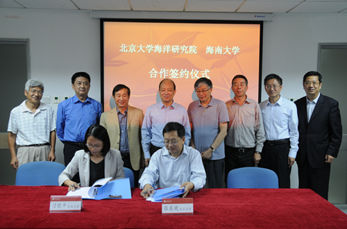 2014年9月22日上午,海洋研究院与海南大学科研合作交流见面会暨合作协议签约仪式在廖凯原楼举行。这是北京大学与海南省签署校省战略合作协议以来在具体落实方面的又一重要合作成果。北京大学陈十一副校长、海南大学李建保校长及双方涉海相关学科教授近50人参加交流并共同见证签约仪式,海洋研究院张东晓常务副院长和海南大学刁晓平副校长分别代表双方签署合作协议。活动由海洋研究院王磊副院长主持。