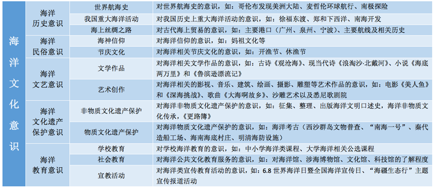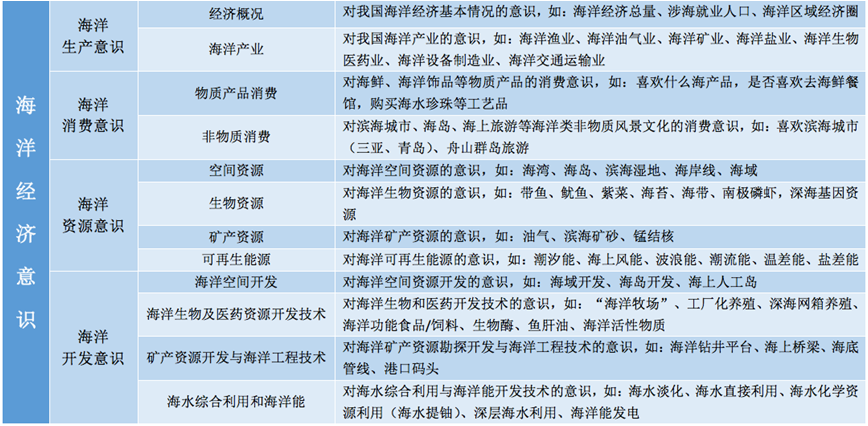 ②适用性。国民海洋意识调查对象为普通民众,指标的选取需贴近生活、通俗易懂,与普通民众生活息息相关。一方面有助于海洋意识调查的开展,另一方面也有助于引起民众的共鸣,提高民众海洋意识水平。