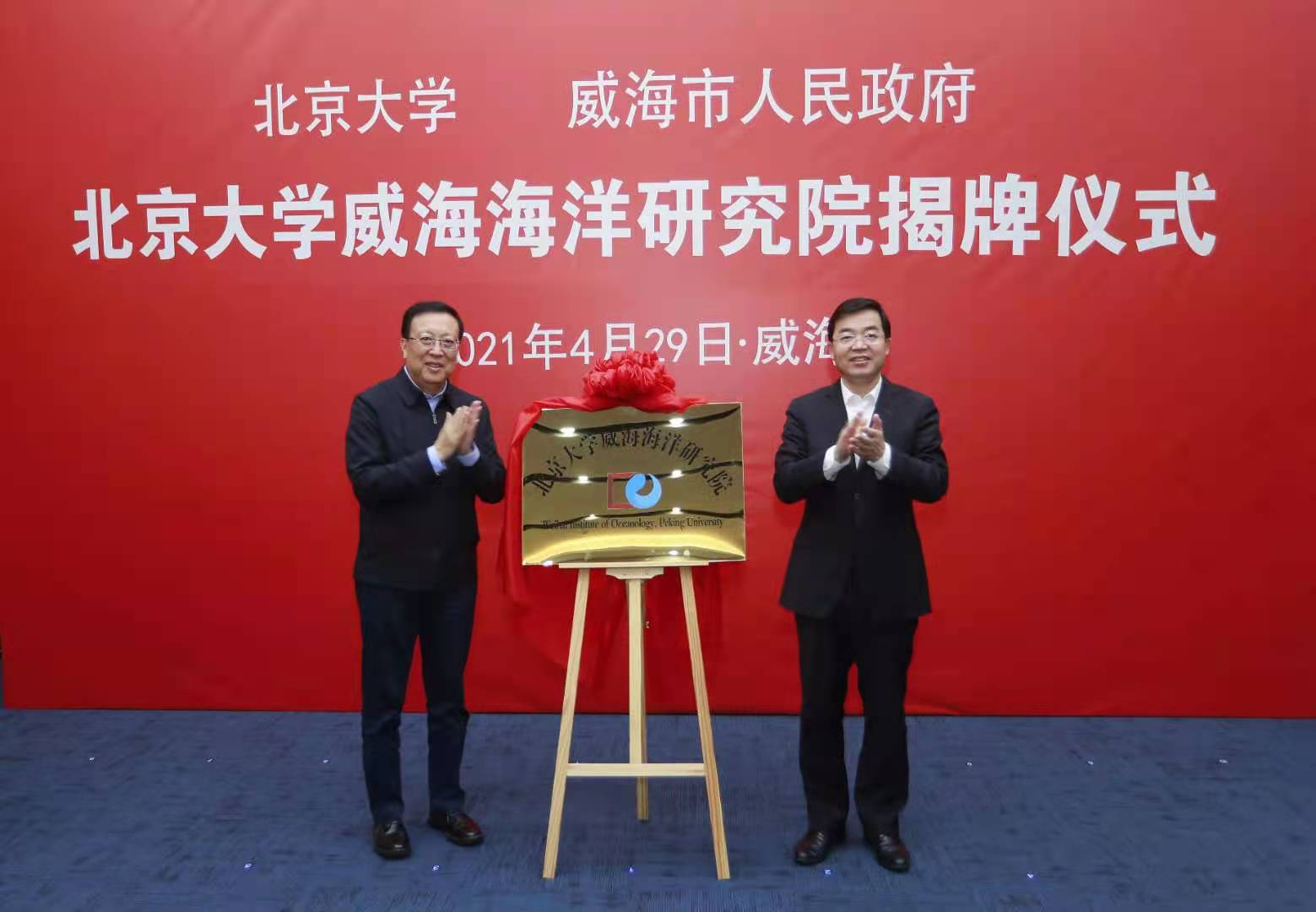 2021年4月28日至29日,北京大学校长郝平率团赴山东,出席北京大学威海海洋研究院揭牌仪式。党委常委、常务副校长、中科院院士龚旗煌,党委常委、副校长、中科院院士张平文,威海市市委书记张海波、市长闫剑波等出席揭牌仪式。