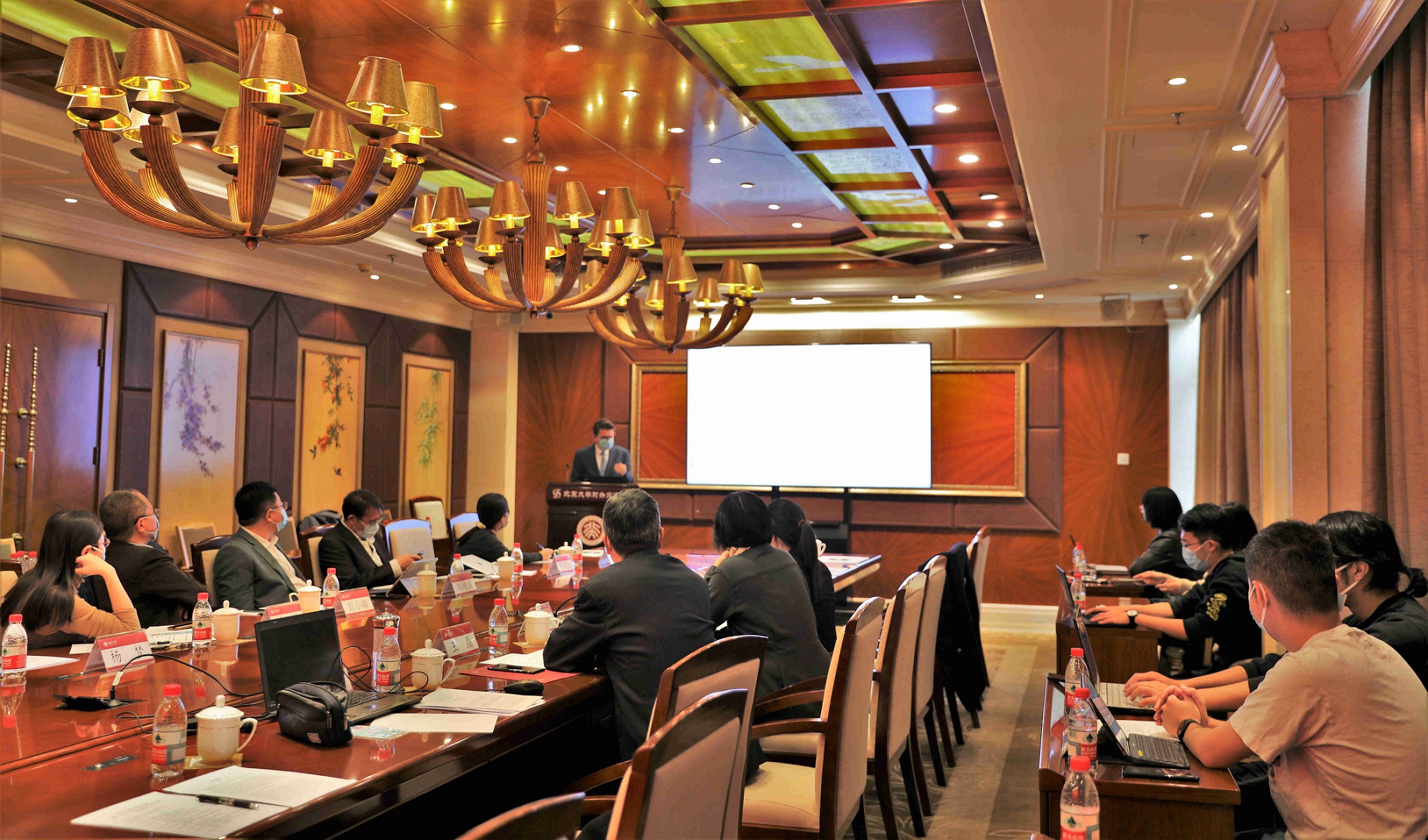 11月3日下午,以“威言海谈”为题的北京大学威海海洋研究院专场交流研讨会在英杰交流中心第二会议室举行。科技开发部副部长郭蕾致欢迎词。北京大学海洋领域专家学者与威海市相关单位领导分别在北京分会场和威海分会场以视频连线的方式联动,就北京大学威海海洋研究院如何对接威海当地需求、推动威海创新发展进行了务实而坦诚的交流。