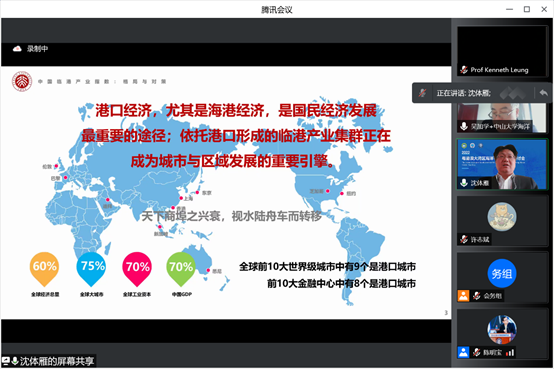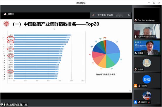 北京大学沈体雁教授应邀出席了研讨会,并在开幕式上做题为《临港产业发展的中国格局与粤港澳大湾区策略》的特邀报告。报告指出,临港产业集群对建设现代化经济体系具有关键意义,开展《中国临港产业集群指数》研究,顺应港产城发展规律,符合新时代发展要求,是助力沿海城市实现第三次跨越的重大机遇。报告提出了临港产业集群发展理论模型,建立了评估指标体系和竞争力指数,并从港口、临港工业、临港服务业等角度评价了我国50个主要海港城市临港产业集群的发展水平和发展战略。报告立足于实践性,为沿海城市加强政策突破创新、规划引领产业发展提供了重要依据。