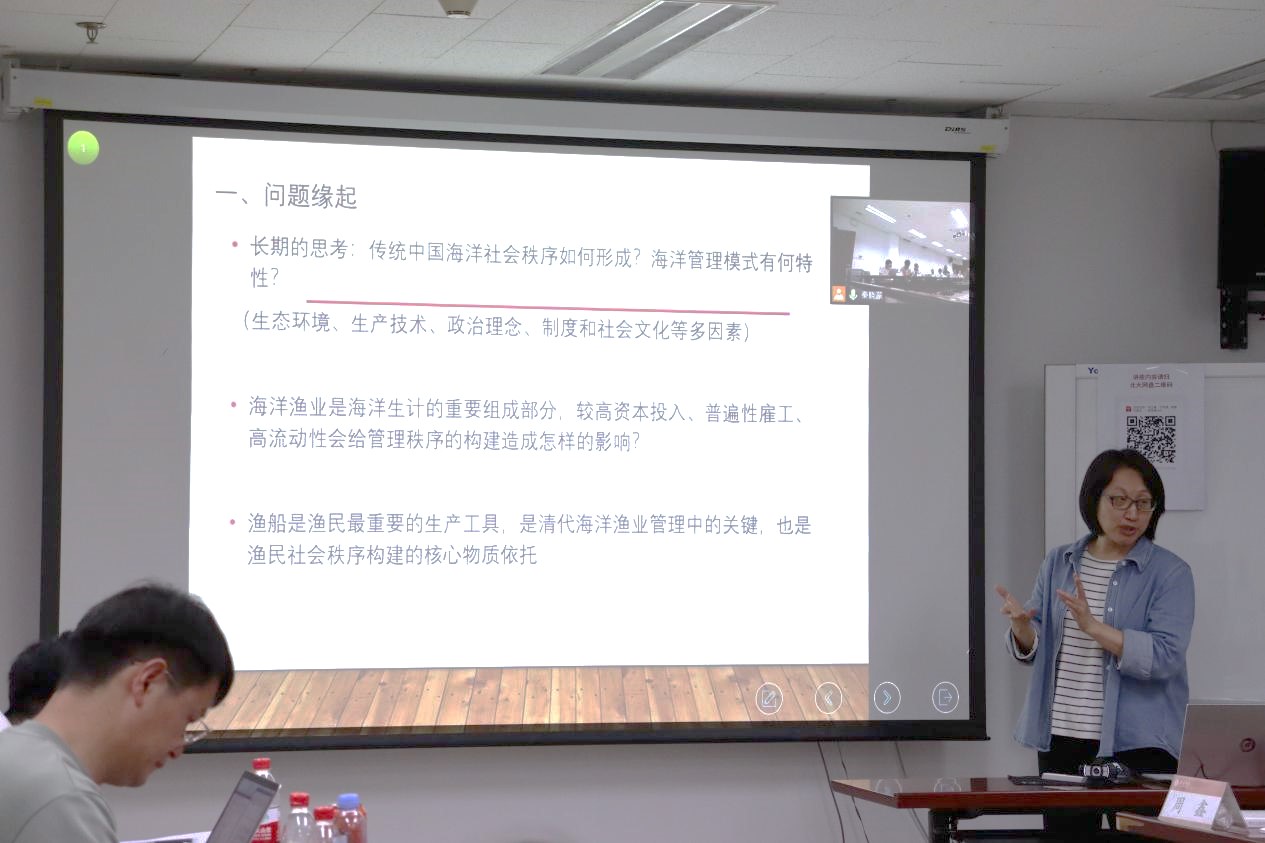 论坛的下半场展现了多个“观测点”视角下的海洋史,由上海社会科学院历史研究所副研究员蒋宏达主持。中国海洋大学文学与新闻传播学院副教授杨秀英的研究为《古籍中的海洋生物名称考辨》,梳理了比目鱼、鲸、青鱼在不同历史文献中的名称和图像。广东省社会科学院研究员周鑫进行了《海洋知识史:一种尝试》的报告,从文献的立体性、人群的主体性、议题的开放性,讨论了海洋知识史如何实现方法与内容的突破。复旦大学历史地理研究中心教授丁雁南介绍了题为《怒海争锋:〈海军纪事(1799-1818)〉及其地理学》的研究,从40卷的《海军纪事》期刊出发,讨论了从船只作为“浮动实验室”到“期刊地理学”的历史地理学形成发展过程。中山大学历史学系教授杨培娜的报告主题为《跨越畛域?清代海洋渔船管理的原则和变通》,围绕渔船牌照的制度设计和实施,探讨了清代渔业管理中的“跨境捕捞”问题。