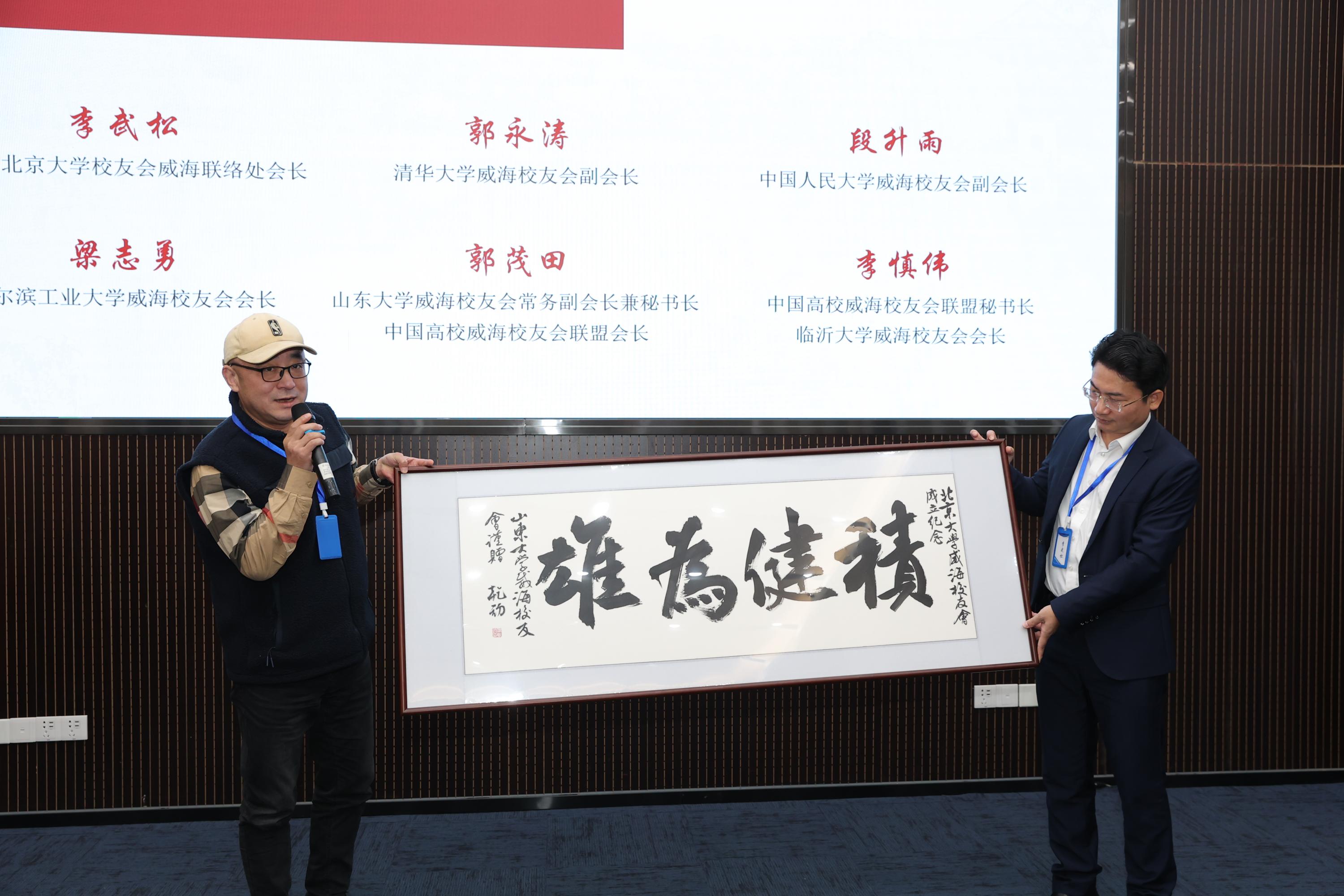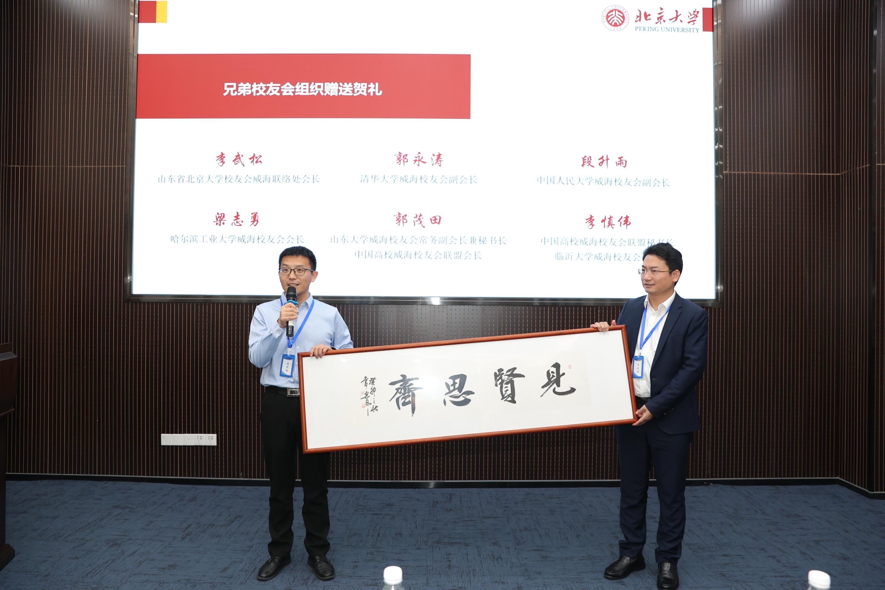 清华大学、中国人民大学、哈尔滨工业大学、山东大学、中国高校联盟等兄弟校友会组织分别向北大威海校友联络处赠送了贺礼。