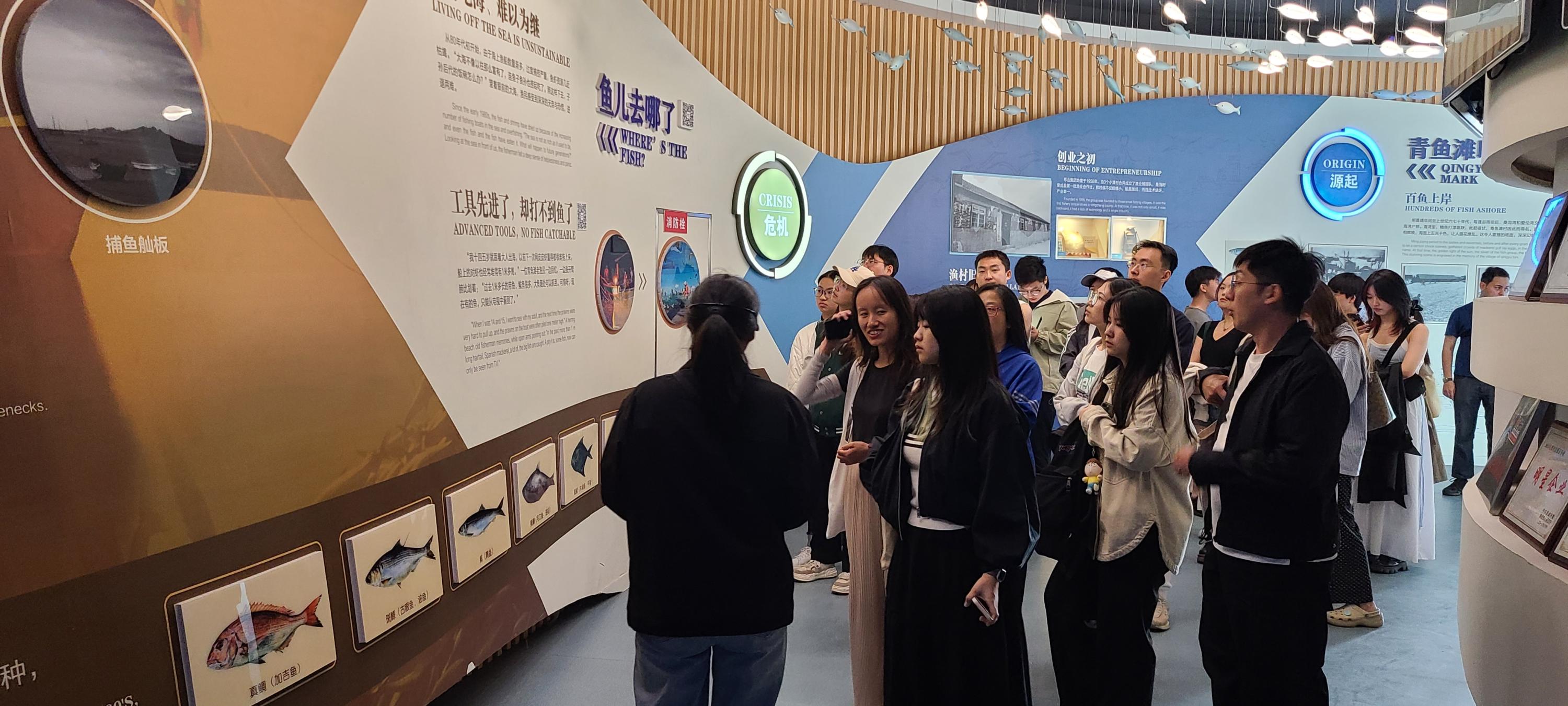 当日下午,参访团走进国家级海洋牧场示范项目——爱伦湾海洋牧场。在体验馆内,师生们通过互动展陈了解海洋生态养殖模式;登上养殖平台,实地观察现代化海洋牧场运作,感受科技赋能“蓝色粮仓”的实践。