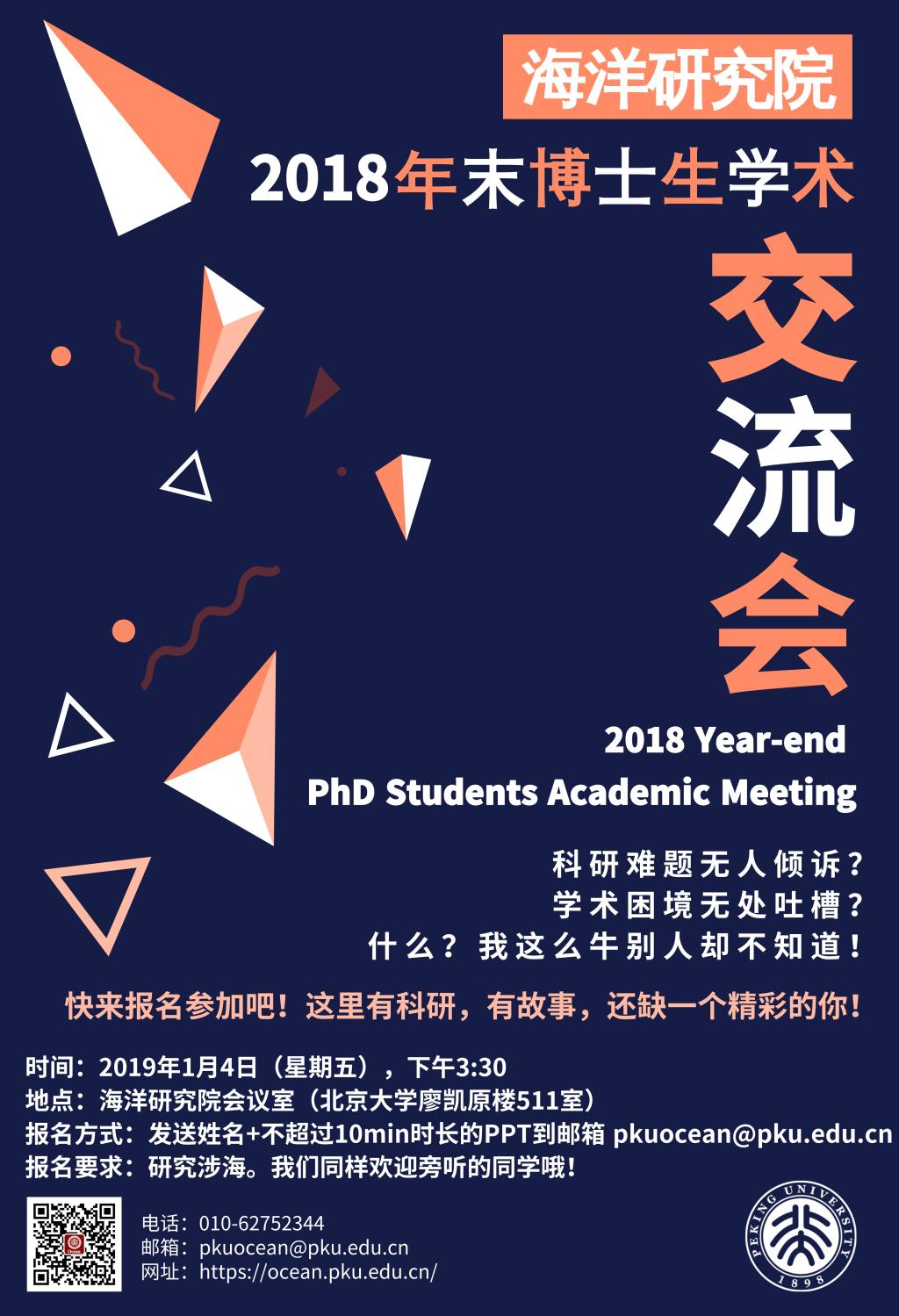 海洋研究院的年末博士生交流会即将举办!想领略涉海学科交叉所碰撞出的精彩吗?想与北大海洋人交流自己的研究成果吗?想和海洋大家庭倾诉自己的学术生活吗?如果你的研究涉海,那就快来报名加入我们吧!