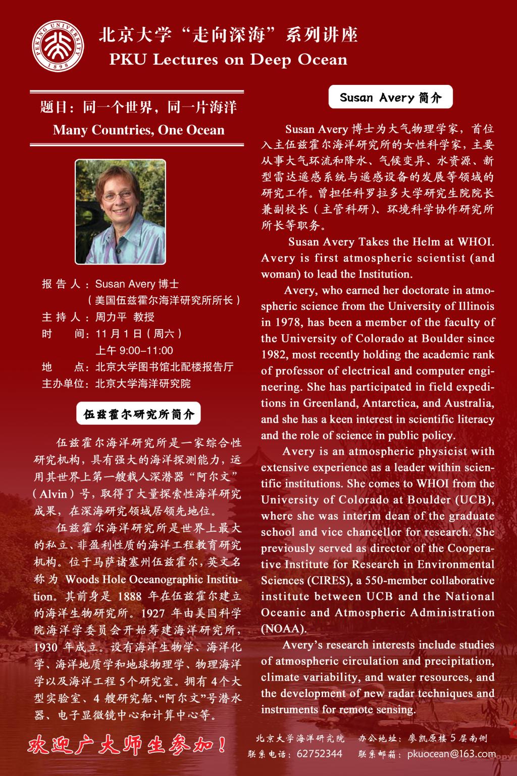 报告人:Susan Avery 博士(美国伍兹霍尔海洋研究所所长)