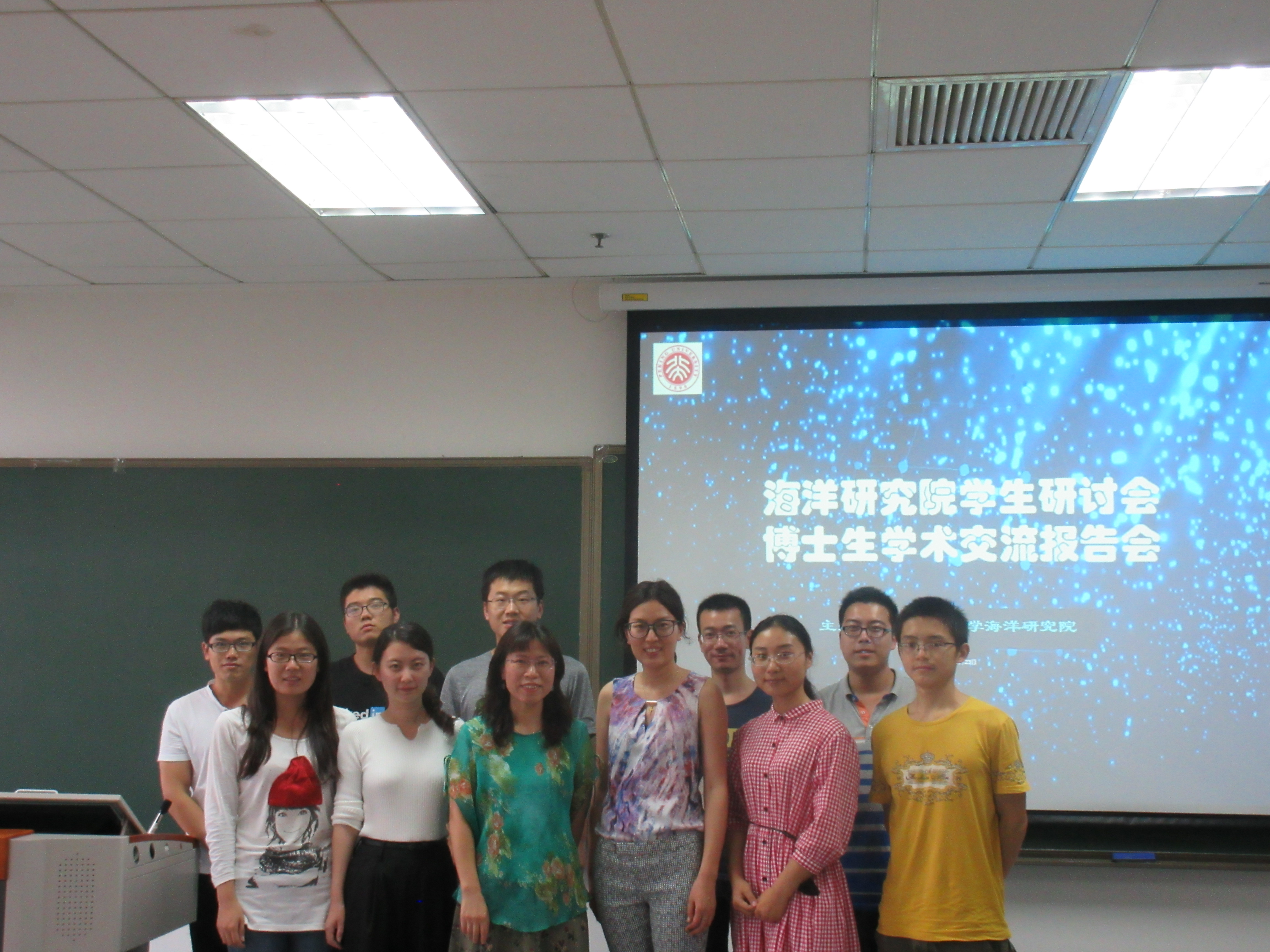 2016年9月23日下午,北京大学海洋研究院首届学生研讨会暨研究院博士生学术交流报告会于北京大学廖凯原楼506教室举行。北京大学海洋研究院郑玫副院长与牟绍艳主任出席会议。5名由北京大学海洋研究院分别与北京大学工学院、城市与环境学院、历史学系、信息管理系联合培养的博士生代表参加了会议,并就各自的科研进展与研究计划进行了认真细致的学术报告。作为北大海洋研究院的青春力量,博士生们通过自己专业领域的学术成果展示,向老师和同学们展现了北大海洋人脚踏实地、严谨求是、敢为人先、勇于创新的时代精神与风貌。