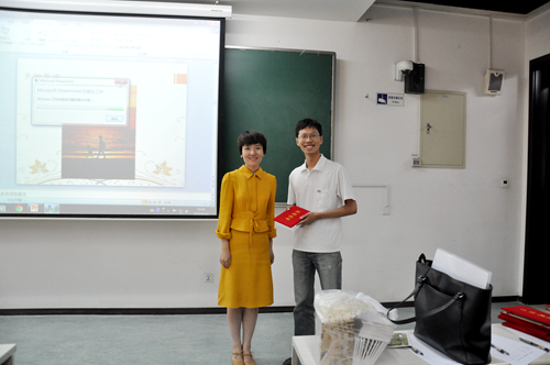 团委副书记张莉鑫为一等奖颁奖