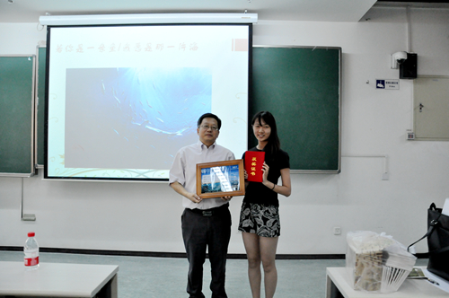 工学院院长兼海洋研究院院长张东晓为特等奖颁奖