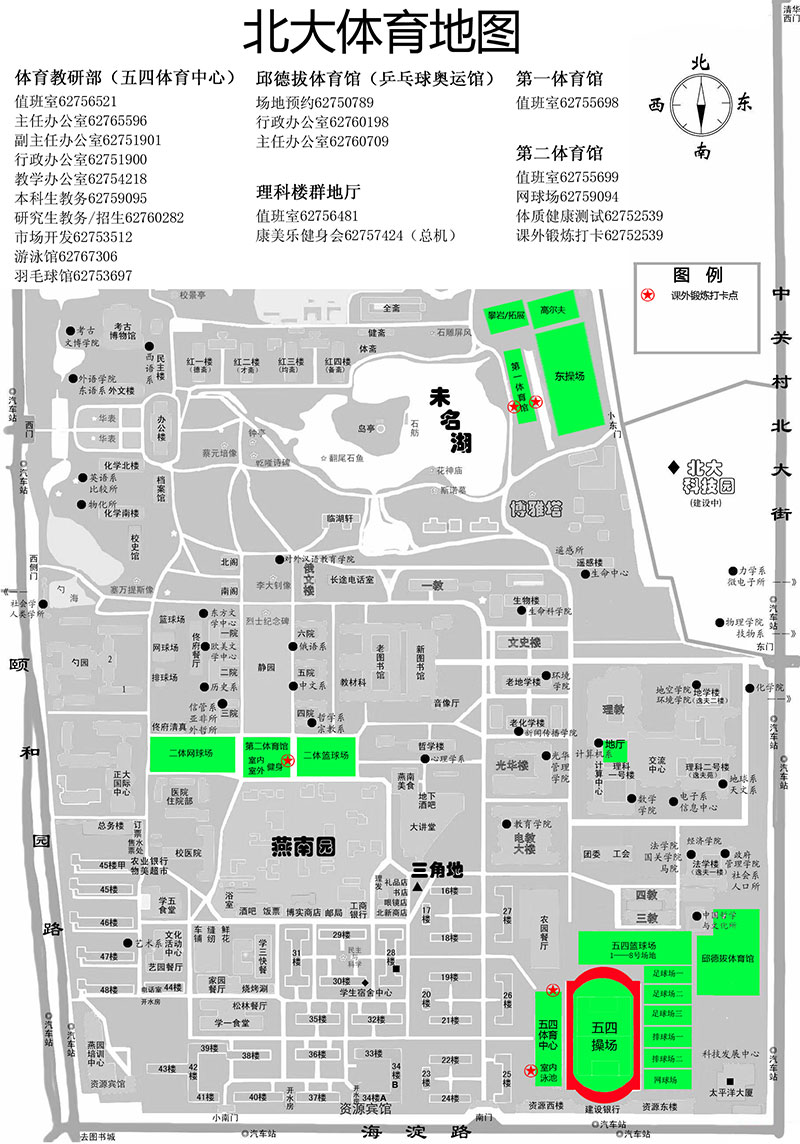 北京大学的校园体育活动丰富多彩:以“三自主”为特色的体育课项目众多;50余个体育类学生社团及教职工健身活动开展红火,体育文化节暨校运会、冬季越野长跑、“北大杯”、“硕博杯”等品牌赛事注重学生自我教育和身心全面发展;高水平代表队硕果累累,北大男女篮双双铸就CUBA、CUBS“双冠王”伟业。