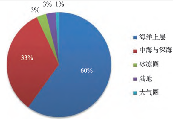 图2 1971-2010 年气候系统增加的净能量分配图(注:海洋上层为0-700 m,中层海与深海在700 m以下,IPCC, 2013)。