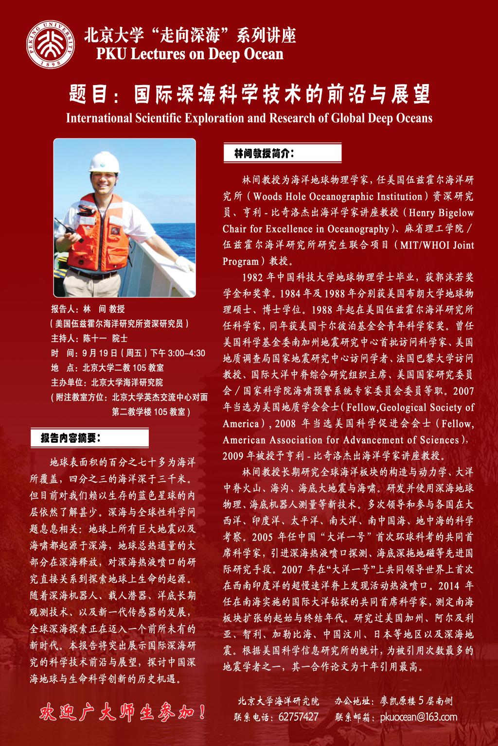 报告人:林 间 教授 (美国伍兹霍尔海洋研究所资深研究员)