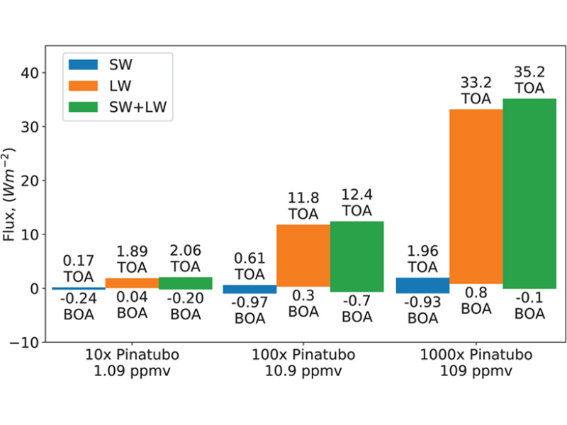 Even though volcanic emissions are well known for their role in causing multi-month cooling effects at the top of the atmosphere and the surface, in some cases there is substantial warming from sulfur dioxide that can offset the cooling from sulfate particles.