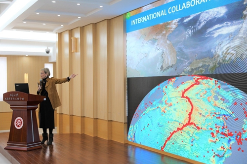On the afternoon of Oct. 9, Professor Margaret Leinen's lecture "US Geoscience and International Partnerships" was held by College of Environmental Sciences and Engineering and Institute of Ocean Research jointly. The lecture was hosted by Zheng Mei, vice dean of Institute of Ocean Research. During the lecture, Margaret Leinen emphasized that international partnerships had been consistently playing an extremely crucial role in the field of geoscience research, and that global data-sharing highly benefited the development of global science researches. What's more, Professor Margaret Leinen also introduced the top ten trends of science development putting forward by American Geophysical Union (AGU), including realizing globalization of science and talent pool, increasing cooperation between international institutions, and etc.
